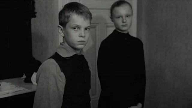 La scène ultime de confrontation entre le régisseur et son fils condense cette dynamique. L’enfant, accusé d’avoir brutalisé Sigi et volé son pipeau, nie malgré les coups. Le père descend l’escalier pour aller s’expliquer auprès du baron : geste de soumission verticale. Mais un son strident de flûte retentit. Provocation jouissive de l’enfant, défi dérisoire et sublime à la toute-puissance paternelle. Nous en connaissons l’issue — la punition — mais quelque chose s’est déplacé : la peur a changé de camp. La révolte des enfants, même muette, a commencé.